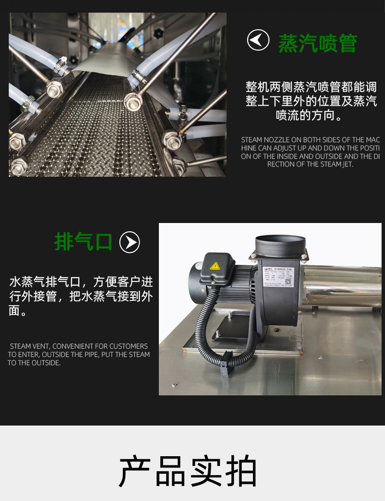 - 減少廢氣排放:與一些傳統(tǒng)的熱收縮設(shè)備(如使用燃氣直接加熱空氣的熱風(fēng)收縮機)相比,蒸汽收縮機的廢氣排放量相對較少。這是因為蒸汽收縮機主要利用蒸汽的潛熱進行包裝材料的收縮,蒸汽在收縮通道內(nèi)循環(huán)使用,只有少量蒸汽在完成熱交換后排出,而且排出的主要是水蒸氣,對環(huán)境的污染較小。