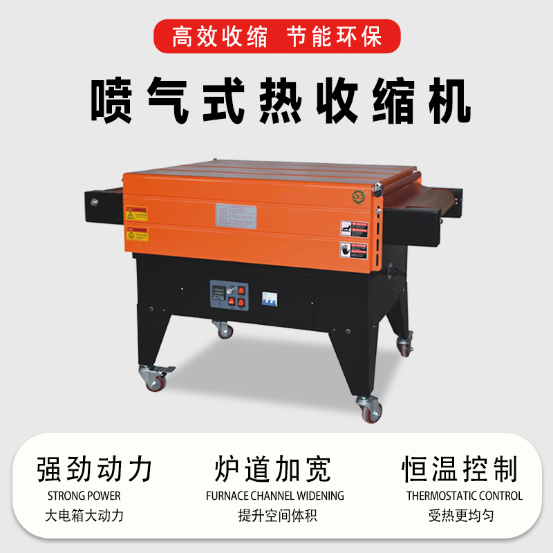 - 收縮均勻度高:噴氣式熱收縮機(jī)通過噴氣系統(tǒng)將熱空氣均勻地噴射到包裝薄膜上。熱空氣能夠全方位地包裹產(chǎn)品,使得薄膜在各個(gè)方向受熱均勻。例如,在包裝正方體形狀的產(chǎn)品時(shí),熱空氣會(huì)從產(chǎn)品的六個(gè)面同時(shí)作用,讓薄膜在各個(gè)面都能以相近的速度收縮,避免出現(xiàn)局部收縮過度或收縮不足的情況,從而使包裝后的產(chǎn)品外觀更加平整、美觀。