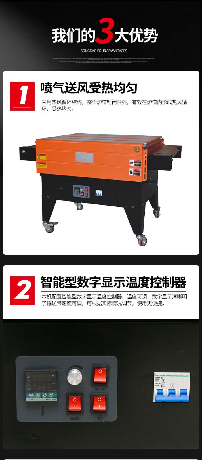 - 精準(zhǔn)溫度調(diào)節(jié):配備了先進(jìn)的溫度控制系統(tǒng),可以精確地調(diào)節(jié)熱空氣的溫度。操作人員可以根據(jù)不同的薄膜材質(zhì)和產(chǎn)品包裝要求,在較寬的溫度范圍內(nèi)(通常為 100 - 250℃)進(jìn)行設(shè)置。例如,對(duì)于 PVC 薄膜,一般將溫度設(shè)置在 140 - 160℃之間,就能實(shí)現(xiàn)良好的收縮效果;而對(duì)于 POF 薄膜,溫度可能需要調(diào)整到 160 - 180℃左右。這種精準(zhǔn)的溫度調(diào)節(jié)有助于優(yōu)化包裝質(zhì)量,避免因溫度過高導(dǎo)致薄膜破裂或溫度過低使薄膜無法充分收縮。