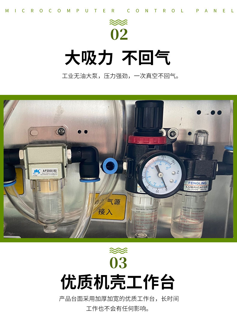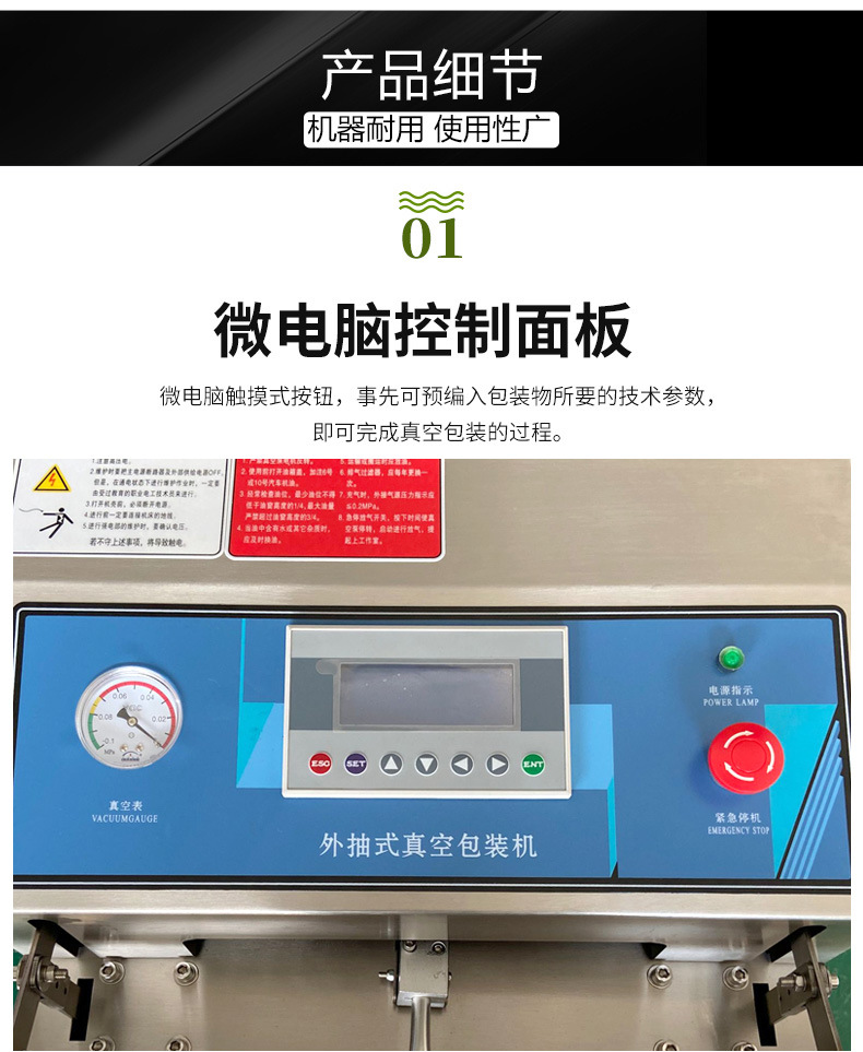 - 真空腔清潔:定期打開真空腔,清理腔體內的雜物、灰塵和殘留的包裝材料。尤其要注意清理真空腔的角落和縫隙,可以使用小型的清潔工具,如毛刷等,確保無雜物殘留,以免影響真空密封效果。