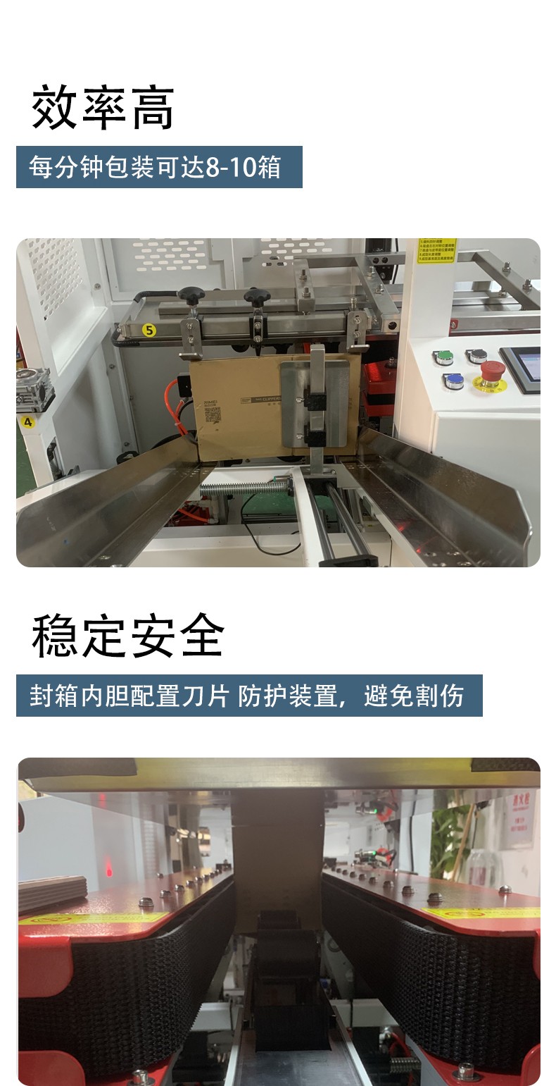 中速機(jī)型(如臥式 18-25 箱 / 分鐘)效率可達(dá)人工的 5-8 倍,高速機(jī)型(40 箱 / 分鐘以上)可滿足規(guī)模化生產(chǎn)線需求。