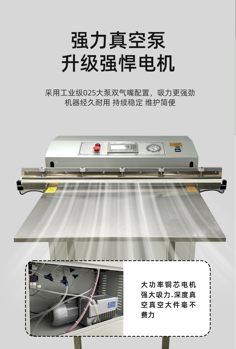 外抽真空包裝機不受包裝容器形狀和尺寸限制,無論是大型工業(yè)零部件還是小型家用物品,只要抽氣口能與抽氣嘴連接,均可進行真空包裝