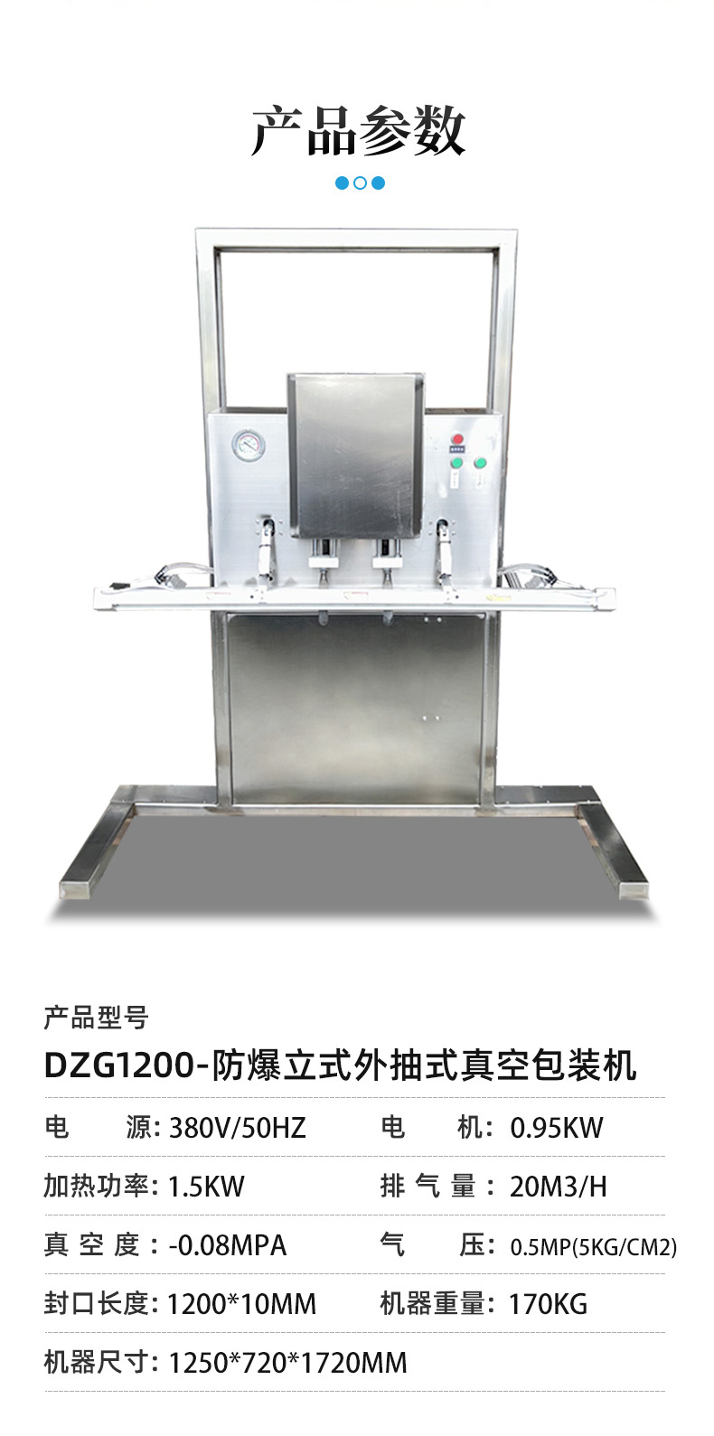 立式防爆真空包裝機(jī)的防爆配置集中在電氣、動(dòng)力及密封過(guò)濾等關(guān)鍵部件,以此適配易燃易爆的特殊工況,其適用工廠也多為存在爆炸隱患的化工、醫(yī)藥等領(lǐng)域,具體如下: