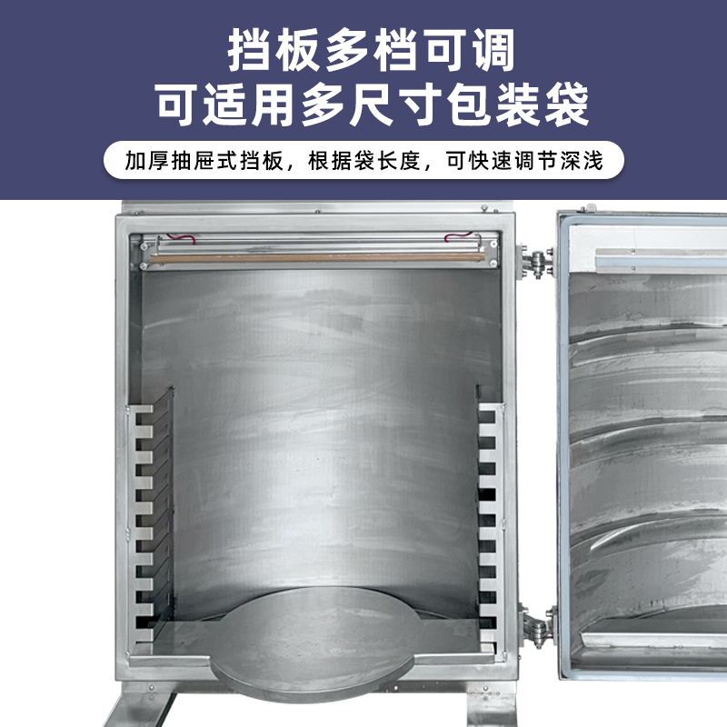 - 大容量真空室:立柜式真空包裝機的真空室容積較大,如 DZ-650L 型號,其熱封有效尺寸可達(dá) 650×8mm,可同時處理大批量食材或大尺寸包裝,能滿足整只火腿、海鮮禮盒、大桶粉末顆粒等特殊形狀物品的封裝需求49。