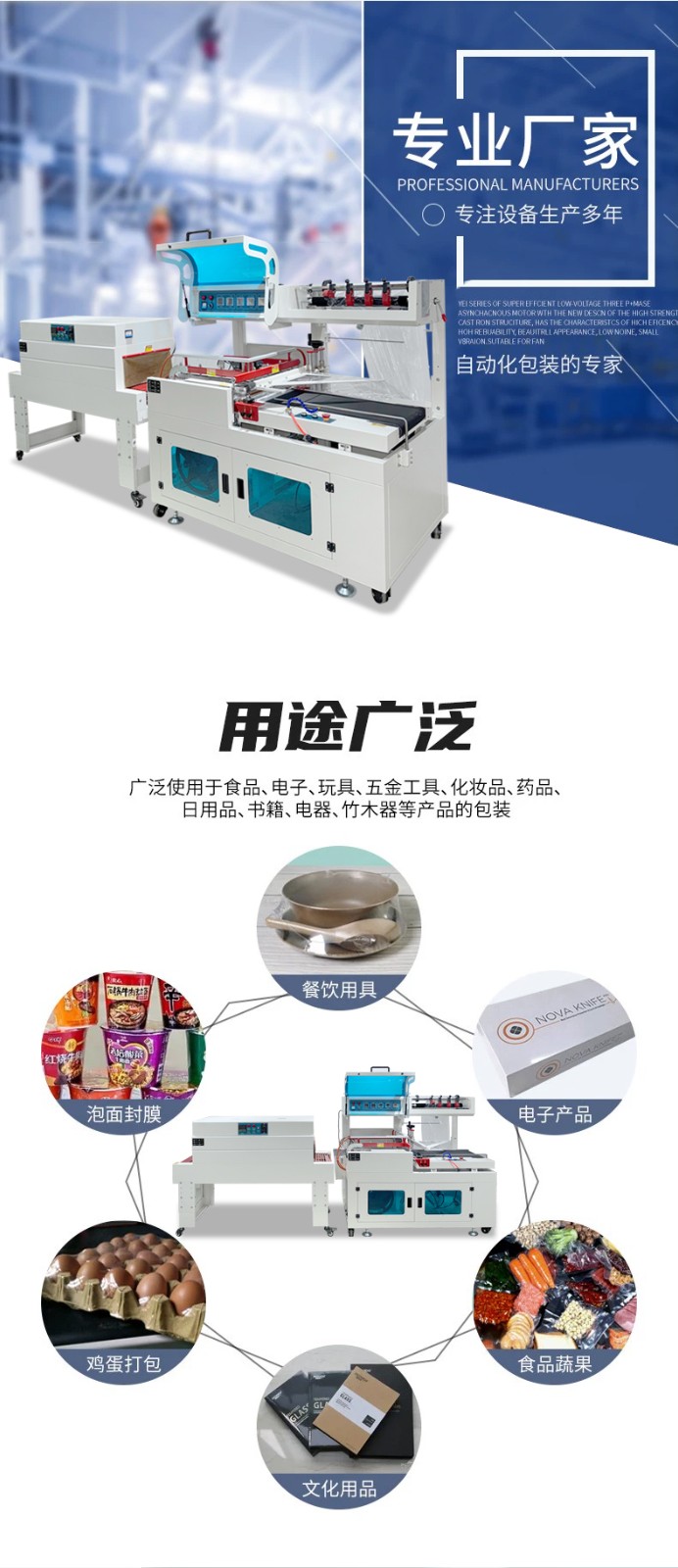 全自動 L 型封切熱收縮包裝機是一款集 “封切套膜” 與 “熱收縮定型” 于一體的自動化包裝設(shè)備,因封切機構(gòu)呈 “L” 形而得名,廣泛應(yīng)用于食品、醫(yī)藥、電子、日化等行業(yè),核心優(yōu)勢是包裝效率高、密封性好、外觀規(guī)整,能快速實現(xiàn)產(chǎn)品的單件或集合包裝,尤其適配規(guī)則形狀(如長方體、圓柱體)及中小型尺寸產(chǎn)品。下面從核心工作原理、關(guān)鍵結(jié)構(gòu)組成、核心優(yōu)勢、適用場景、選型與操作注意事項五個維度,全面介紹該設(shè)備: